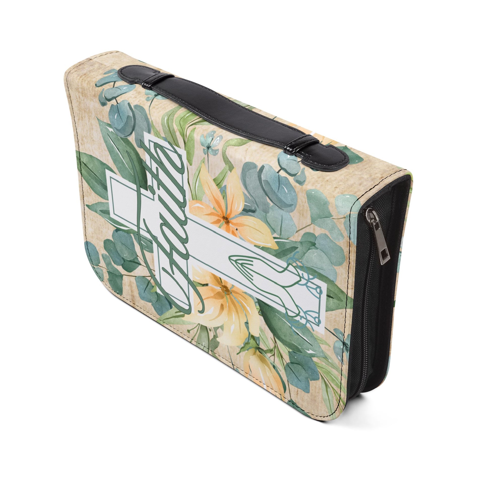 This beautifully crafted Bible Cover combines elegance with functionality. Made from 100% PU leather, it mimics the rich texture of genuine leather, providing a luxurious feel while being lightweight. The floral design with a prominent cross exudes a sense of peace and spirituality, making it a perfect companion for your faith journey. Tailored for individuals who value their scripture, this cover is ideal for churchgoers, Bible study groups, and anyone who cherishes their faith. It makes a thoughtful gift for holidays such as Christmas, Easter, and religious milestones like baptisms or confirmations. Its multiple sizes ensure a perfect fit for most Bibles, letting you carry your scriptures in style wherever you go.