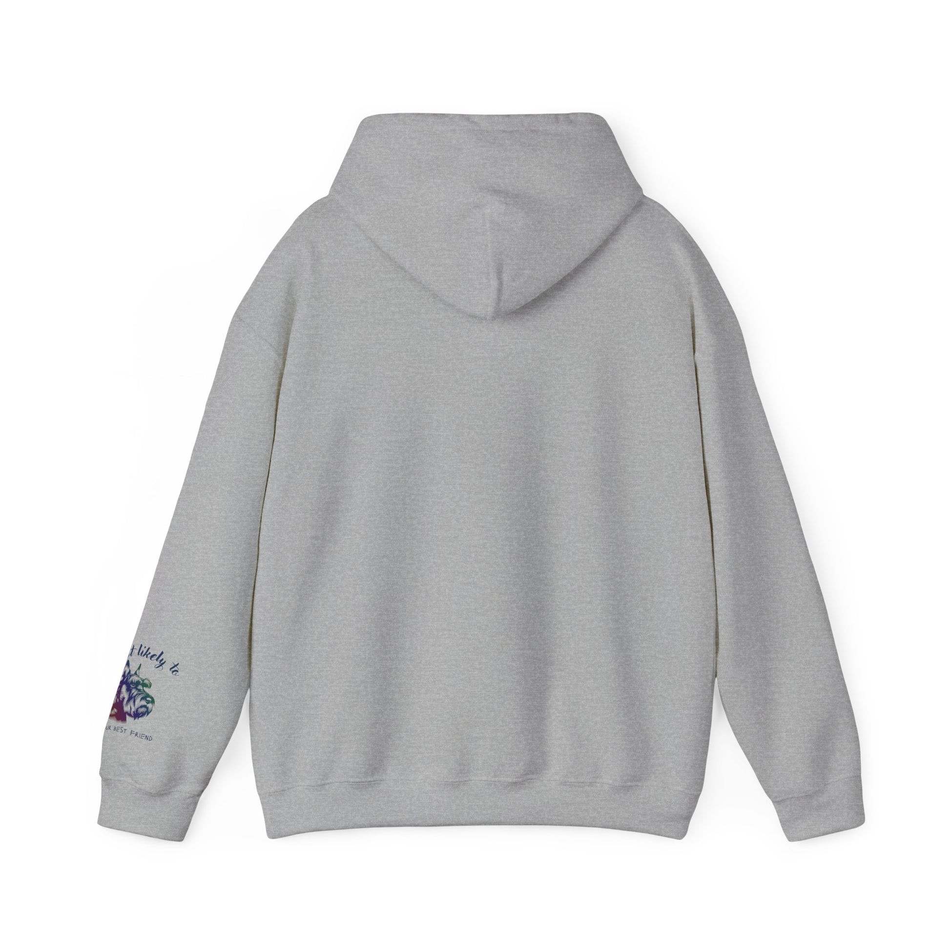 Soft, roomy, and quietly charming — this hoodie carries a hand-drawn schnauzer portrait and the gentle phrase “Most likely to be your best friend.” It feels like a calm morning walk with a loyal pup: warm, familiar, and a little playful. Lightweight yet cozy, the double-lined hood and kangaroo pocket make it an easy layer for neighborhood strolls, vet visits, or lazy weekends spent at home. Subtle sleeve artwork keeps the design personal without shouting. Worn by someone who treats their dog like family, this hoodie becomes part of the ritual: coffee, leash, and that contented, everyday companionship.